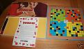 The game was board-based with see through plastic shapes that you placed on the board (a little like dominoes fashion). The shapes were either square, rectangle or any shape based on those two! The plastic shapes had numbers on them.