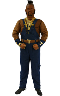 For just £39.99 you too could look the part as you utter the immortal catchphrase "I pity the fool". The eye-catching costume includes a pair of dark blue dungarees with gold coloured buttons and an attached brown belt with a central gold T motif. There's also an integrated brown muscle chest top (in case you're not built like the man himself) with brown arms and dark blue cuffs embellished with a shimmering gold T fancy dress appliques. The costume also includes an attached gold sequined necklace and is completed with a black mohican wig.